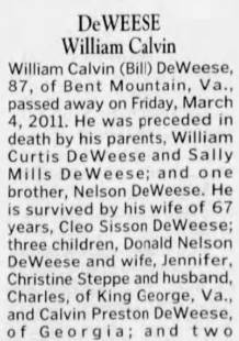 m. 1939 Raleigh Co., WVA Robert Edward Sink, s/o James Monroe & Lydia