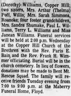 Dorothy Mae Williams, b. Franklin, d/o Alfred Dewey & Gracey Salome
