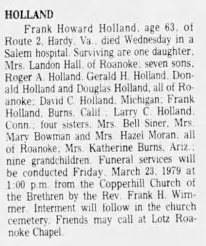 Howard Holland, s/o Leander Albon & 1st wife Mary Virginia (Underwood)