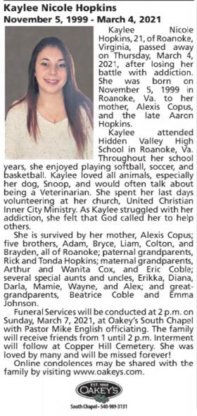Nicole Hopkins, d/o Aaron Blair “Boogie” & Alexis (Copus) Hopkins.