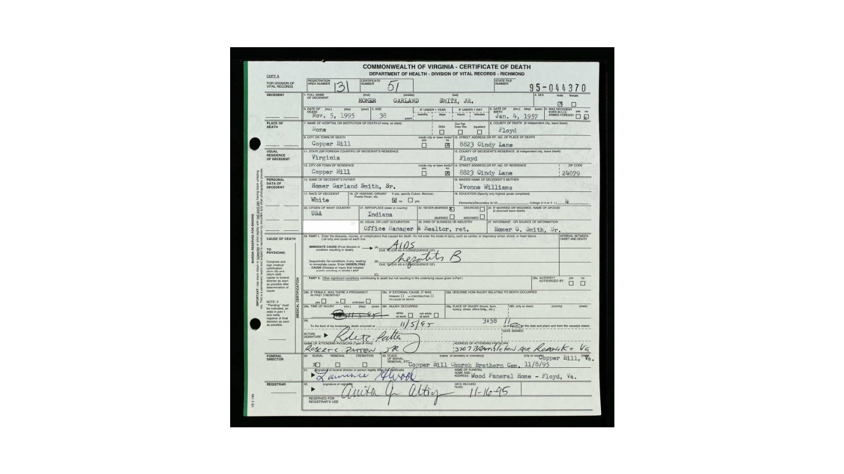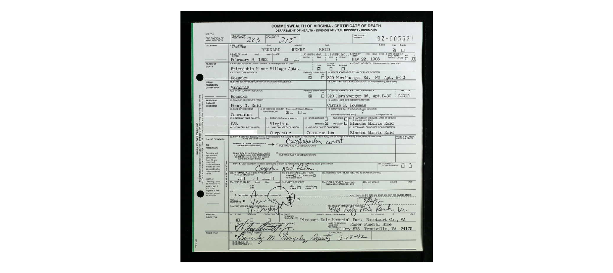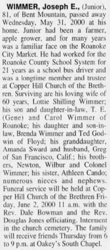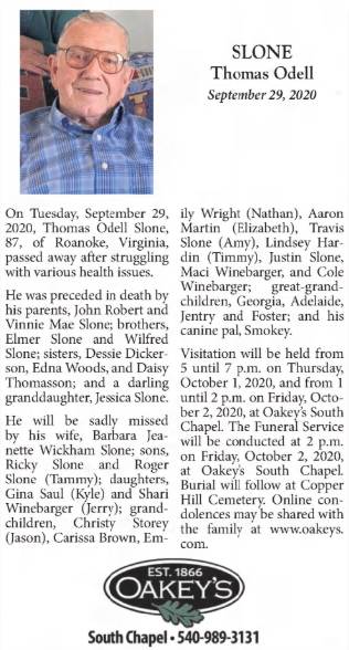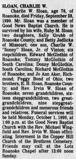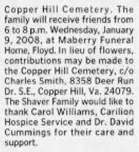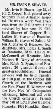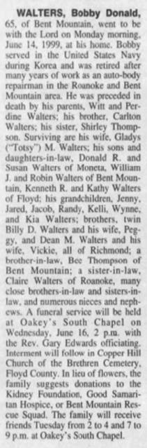 file] He is buried in Pleasant Dale Memorial Park, Botetourt Co., VA with