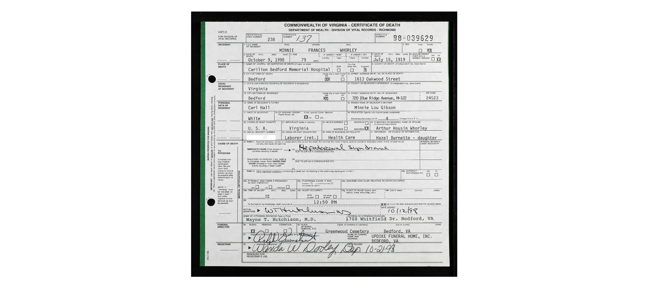 Hale. [Death Cert]