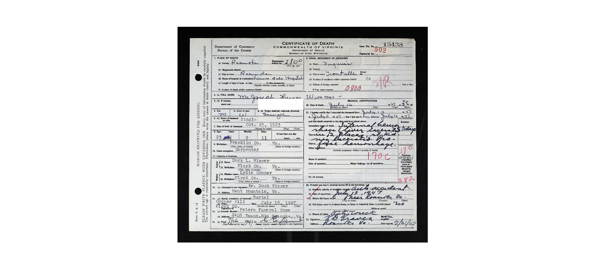 [Death Cert] [no file]