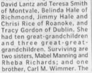 Bradford, Rocky Mount; one great-grandson, Allen Lee Yopp; sister and