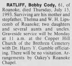 Cody Ratliff, s/o William Cody & Thelma Elizabeth (Underwood) Ratliff.