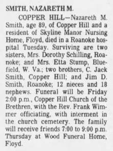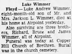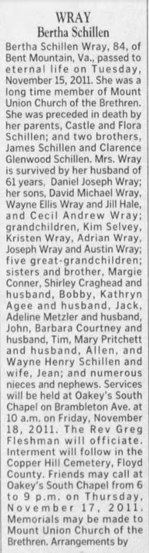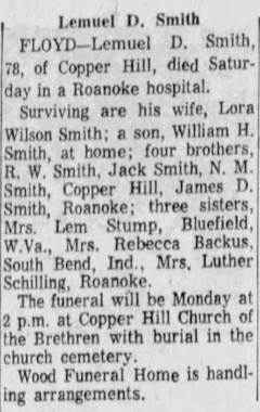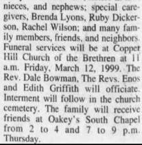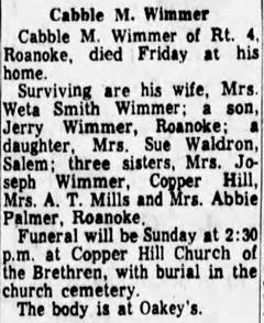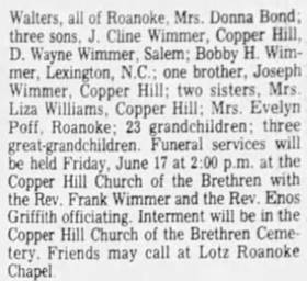 Interment will follow in Copper Hill Church of the Brethren Cemetery. The