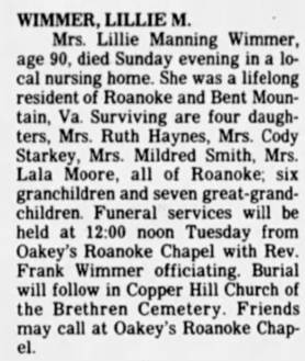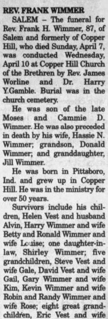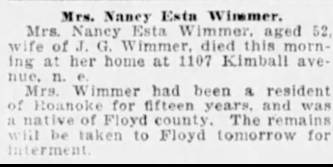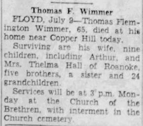Virginia “Thel” Wimmer, b. Franklin, d/o Thomas Flemington & Hattie