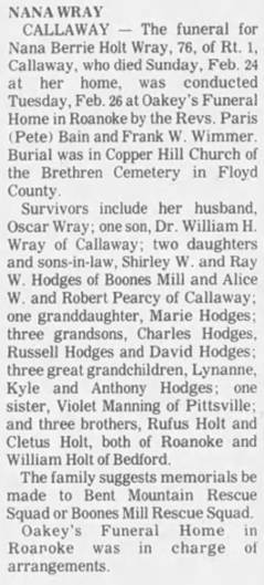 Nana Berrie Holt, d/o James Reuben & Alice Ronie (Richards) Holt. [Death Cert]