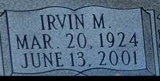 Irvin M., 77, of Callaway, died Wednesday June 13, 2001. His parents, Jesse