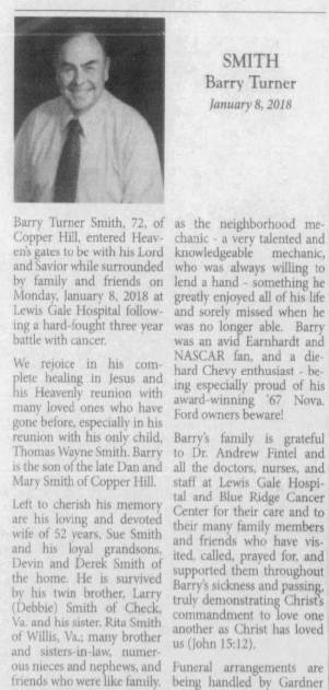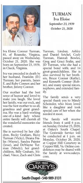 Virginia Department of Transportation with 36 years of service. Surviving