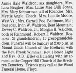 m. 1936 Roanoke, & divorced 1991 Roanoke, James Monroe Hale Sr,