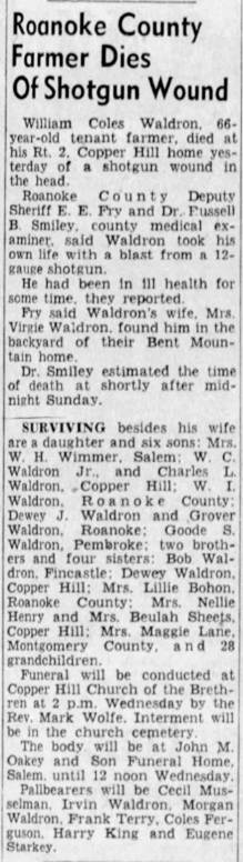 Elizabeth Carole Waldron, b. Roanoke, d/o Willliam Coles Jr & Norma