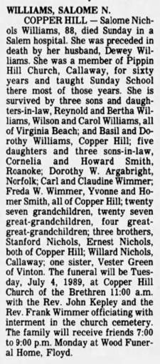 brother-in-law, Virginia and Frank Akers, Salem; several nieces and