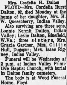 Cordelia Frances (Hurst) Dalton.