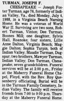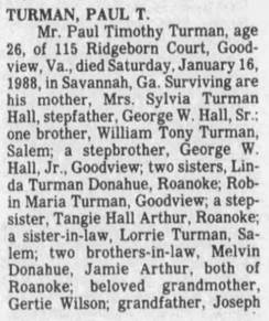 Paul Timothy Turman, s/o Sylvia Gay Turman, d/o Joseph
