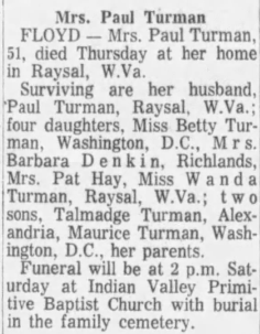 nee Livsie Quesenberry, d/o Loma Quesenberry. [Wet Virginia