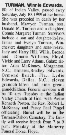 Brenda Gay Turman Williams, d/o Mawyer Eldridge & Winnie