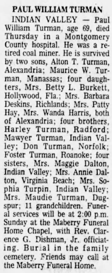 Paul William Turman, s/o Charlie Mack “Mack” & Eliza