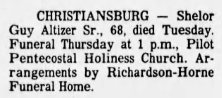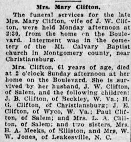 will follow in Den Hill Cemetery, Shawsville, VA. The Akers family