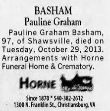 is being served by Horne Funeral Service, Christiansburg, Va.