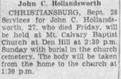 Baptist Church. Interment will follow in the Den Hill Cemetery.