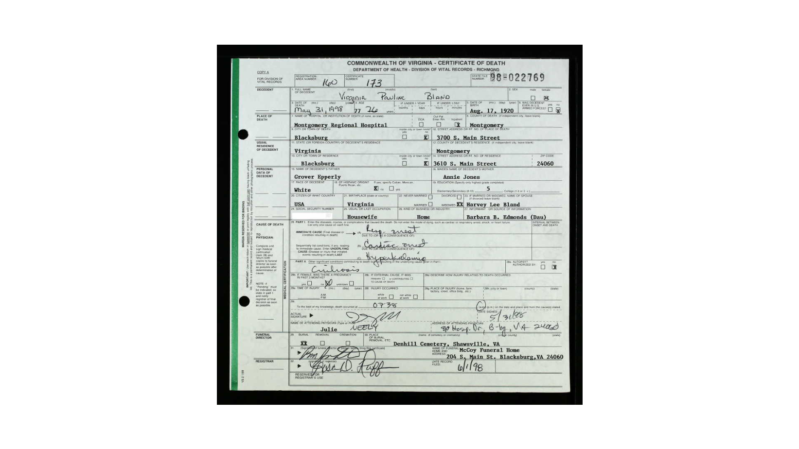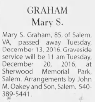 at Den Hill Cemetery, Christiansburg. Online condolences may be left by