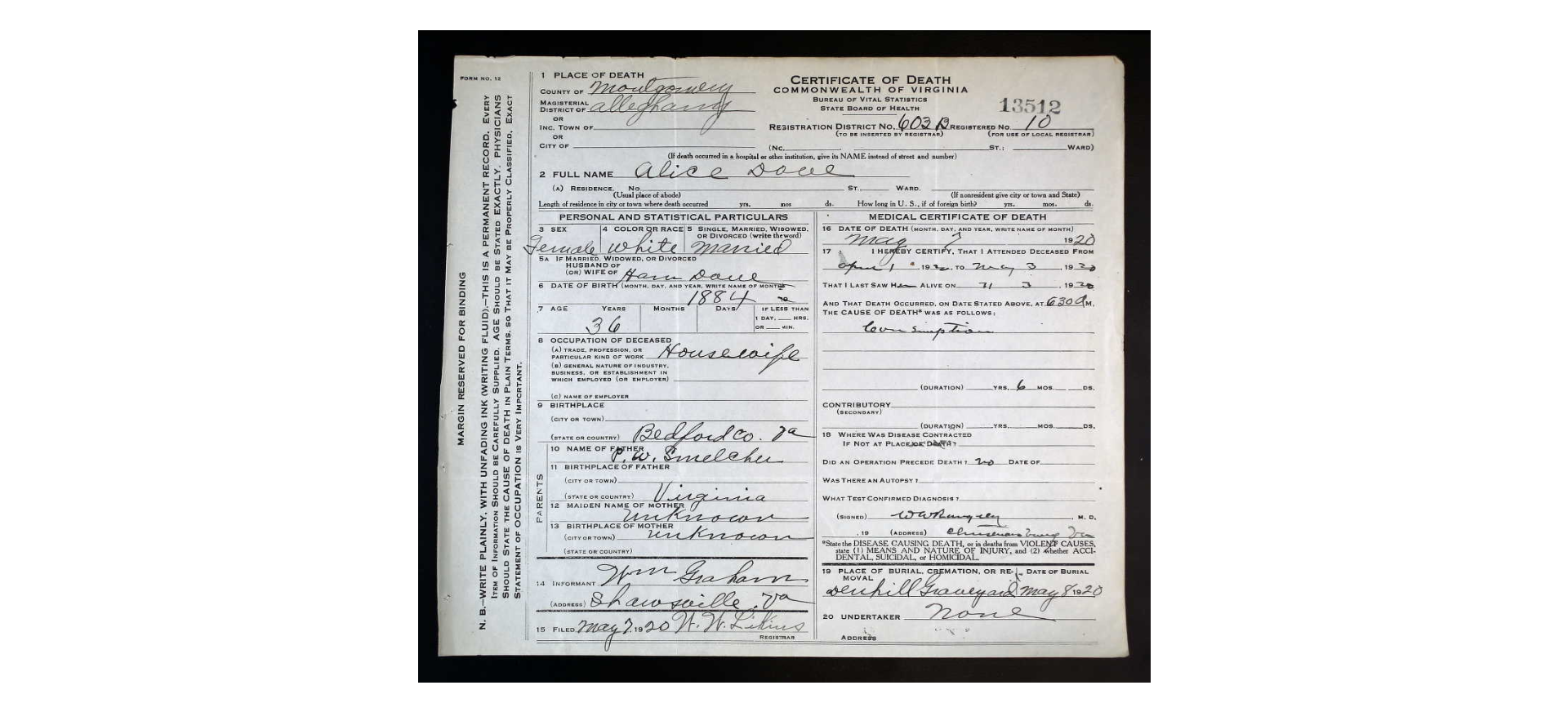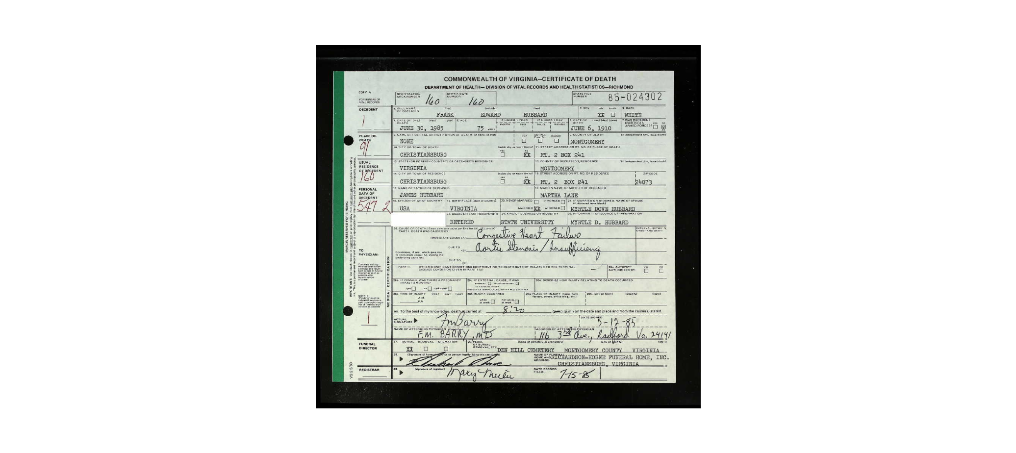Hunter M. & Ruby Gladys (Glass) Loving. [Death Cert]