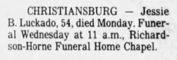 Pulaski, Cliff and Barbara Luckado of Radford; several aunts, uncles,