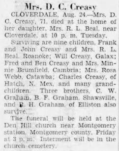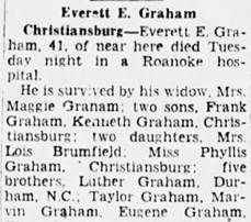 will follow in Den Hill Cemetery, Shawsville, VA. The Akers family