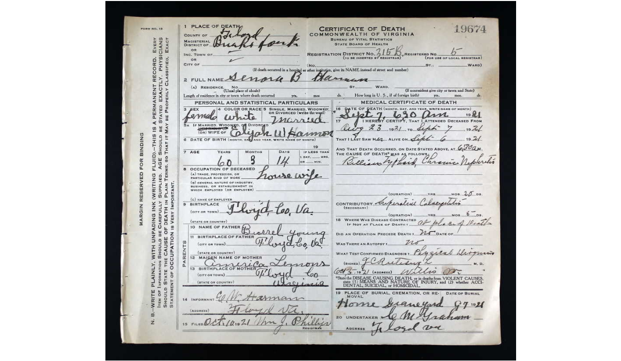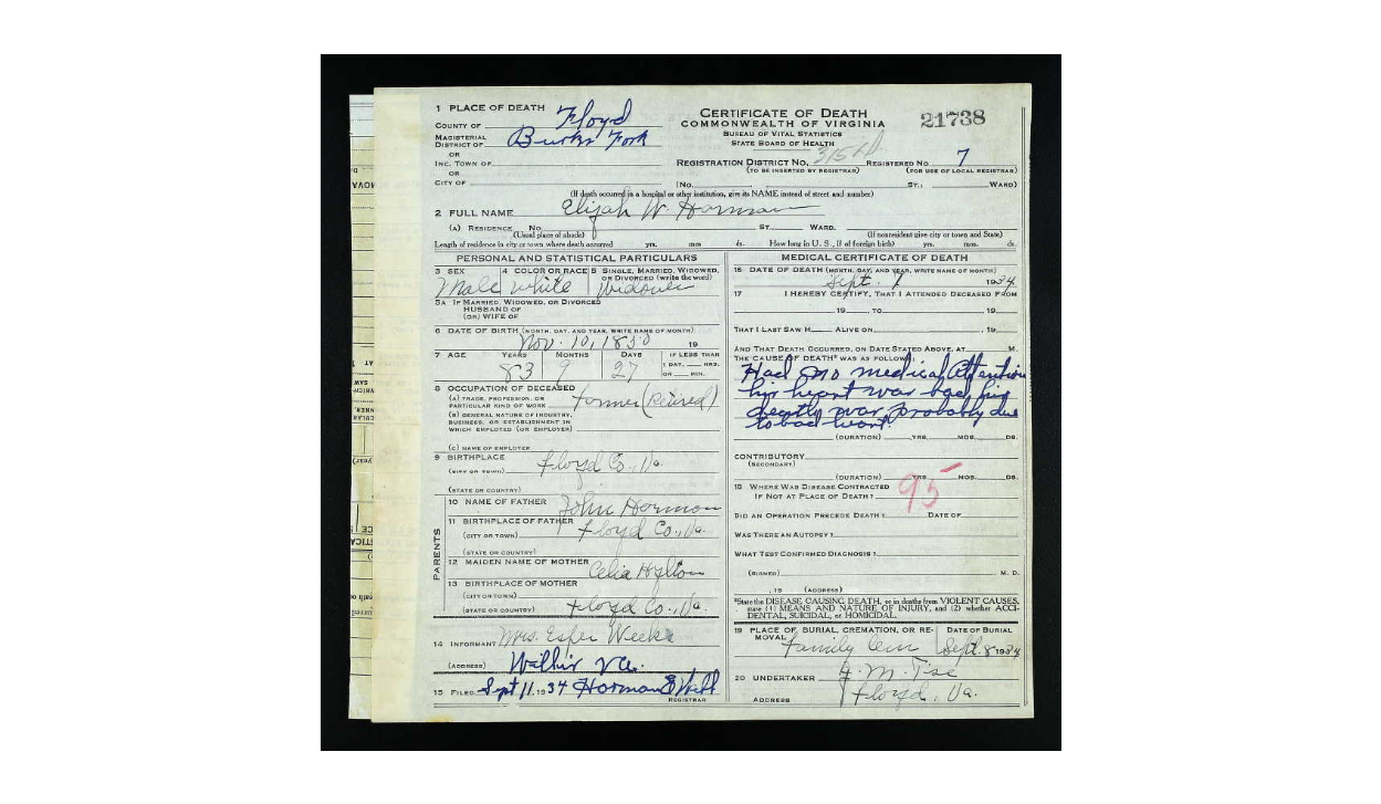 FAG: Find a Grave [Death Record n/a] Floyd Co., VA Death Records n/a 1863-1864 & parts of other years seeming to be missing. [Death Cert n/a] Virginia Death