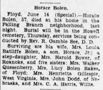 (d/o John & Lydia Russell and widow/o Wm. I. Bolen)