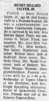 Henry Millard Salyer Jr, s/o Henry Millard & Kateline (Puckett) Salyer. [Death Cert] [no file]