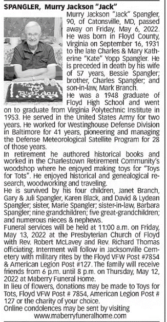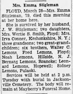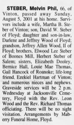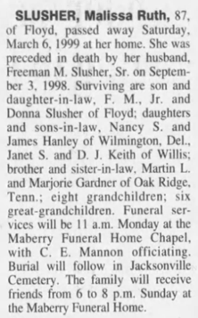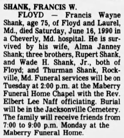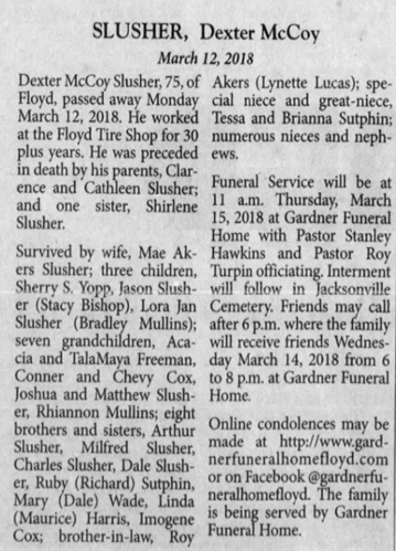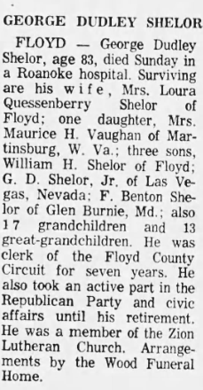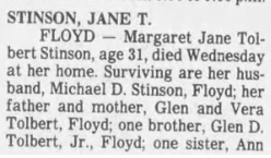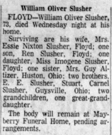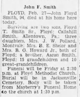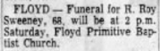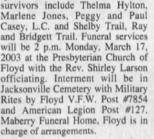 73, of Floyd passed away Friday, March 29, 2002. Survived by, husband,