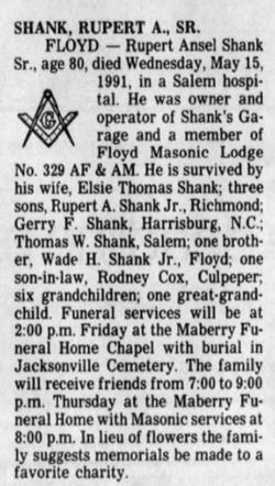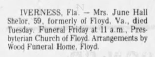 special nieces, Linda Cook, Floyd, Nancy Hubbard, Floyd. Funeral services