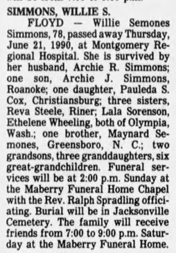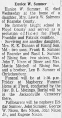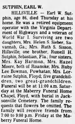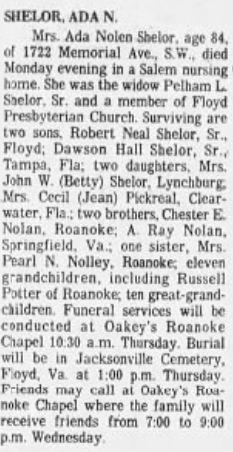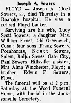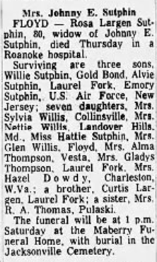 1st m. 1951 Bland, div. 1966 Pulaski, Sadie