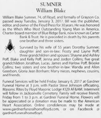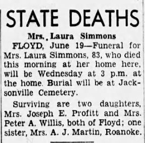 until 8 p.m. Gardner Funeral Home, Floyd, is in charge of the arrangements.