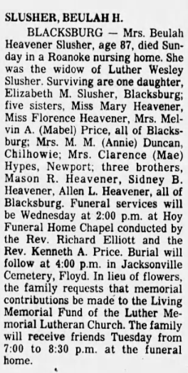 nee Beulah Akers, d/o Andrew Colon & Bessie Lillian