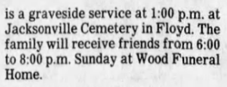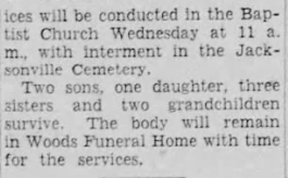 in the Jacksonville Cemetery. A visitation will not be held prior to the