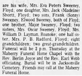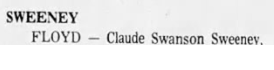 Warren Bruce Sweeney, s/o Major Lee Sr & Margaret
