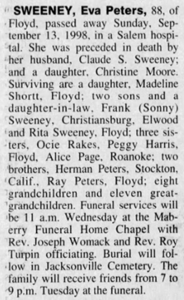 (Peters) Sweeney. Claude 1st m. unknown. He 2nd m.