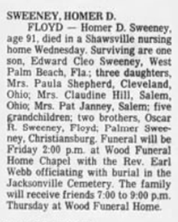 Claude Elwood Sweeney, 1938-living 2021, s/o Claude Swanson & Eva Lena