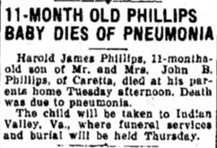 Bane Huff, s/o John Daniel & Vercie Lillie (Phillips) Huff. [DeathCert] [no file]