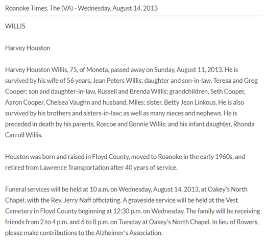 aka Harvey Houston Willis, s/o Roscoe W. & Bonnie