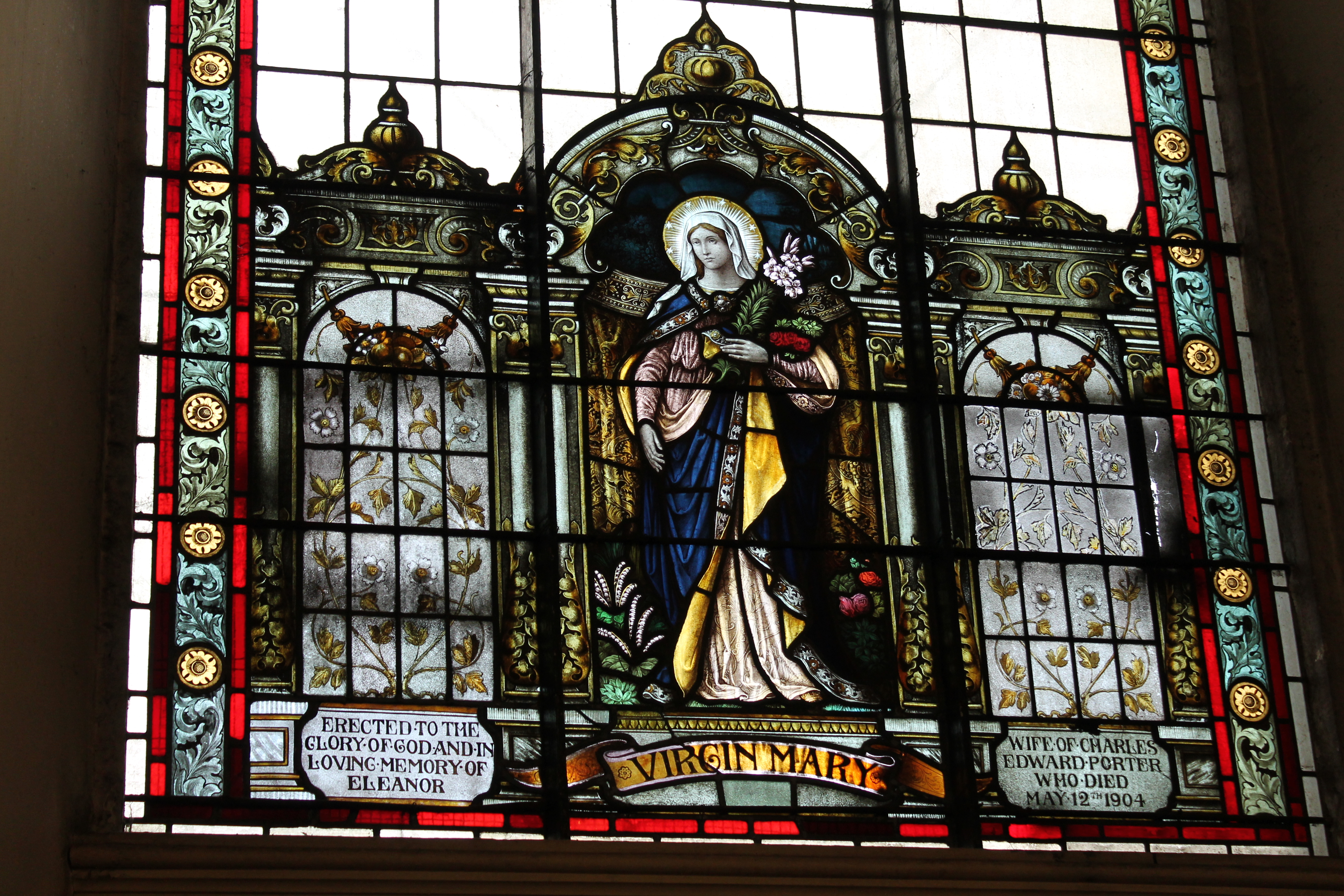Image 8. One of the Tiffany stained-glass windows at Blandford Church. Photo by Ser Amantio di Nicolao, Wikimedia Commons (CC BY-SA 3.0)