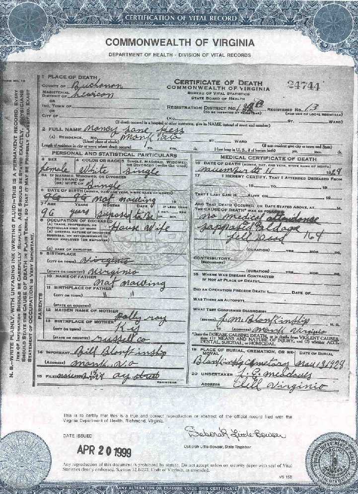 Note: Nancy Jane Hess was the daughter of Samuel Hess & Mary Ray of Russell Co., VA