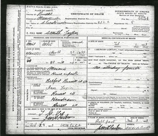Death Certificate of Smith Taylor