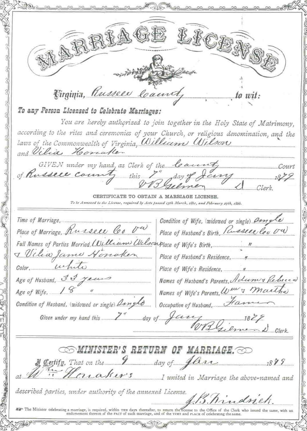 Marriage License of William Wilson & Vilia Honaker