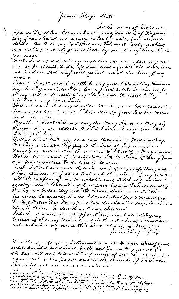 Will of James Ray - 1894