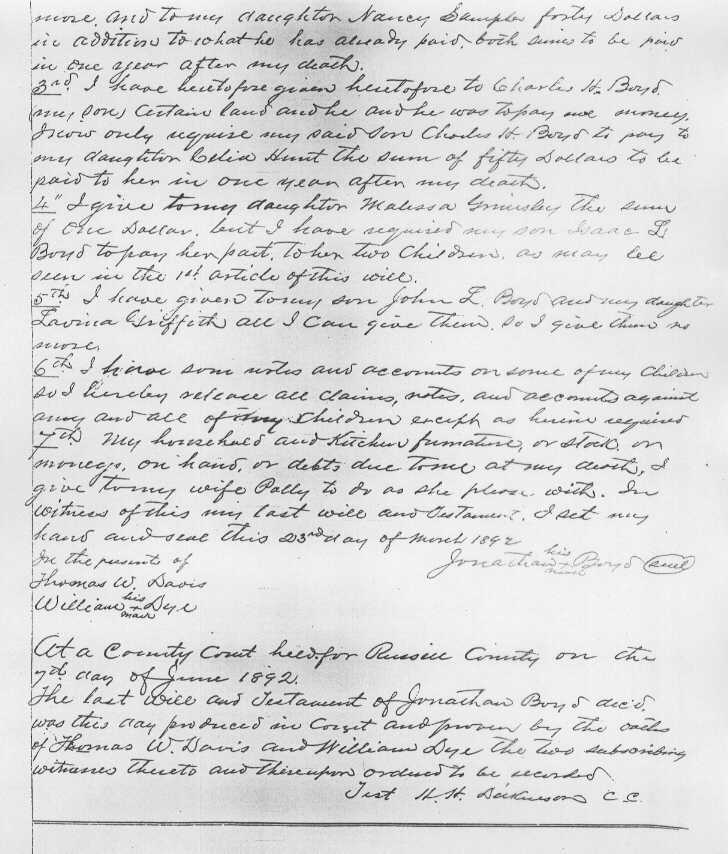 Will of Jonathan Boyd - 1892