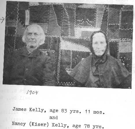 James Kelly was born in Russell Co., VA 24 Jan 1821. He was the s/o William Kelly & Rebecca Caroline Nash. Abt. 1849 he married Nancy Kiser, the d/o John Kiser & Nancy Long. Nancy was born in Russell Co. on 25 Dec 1826. Nancy died on 21 Mar 1907 in Russell Co. and James on 21 May 1908. They are both buried in the Carbo Community Church Cemetery.